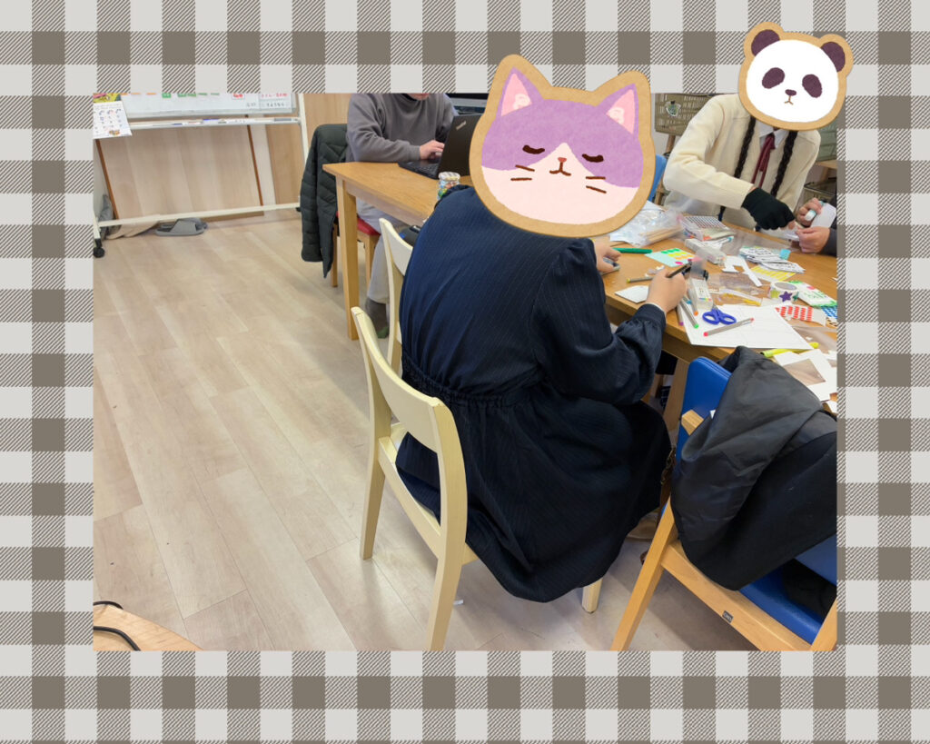 画像は創作活動のイベントを開いた際の一幕です。美術講師の方を及びして、学校の芸術の授業よりも少し深入りした活動を実施しました。